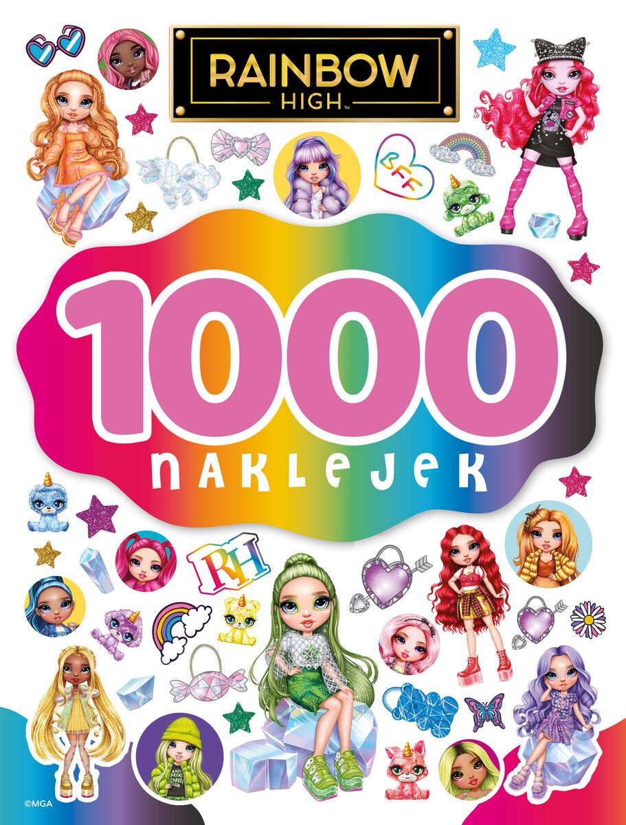 PONAD 1000 NAKLEJEK I MASA KOLOROWEJ ZABAWY! Dołącz do swoich ulubionych przyjaciółek z Rainbow High i przeżyj z nimi kreatywną przygodę! czekaja na ciebie: labirynty, wykreślanki, quizy, kolorowanki i wiele więcej. Chwyć za kredki, otwórz tę książkę i zanurz się w świecie mody, przyjaźni i koloru.
