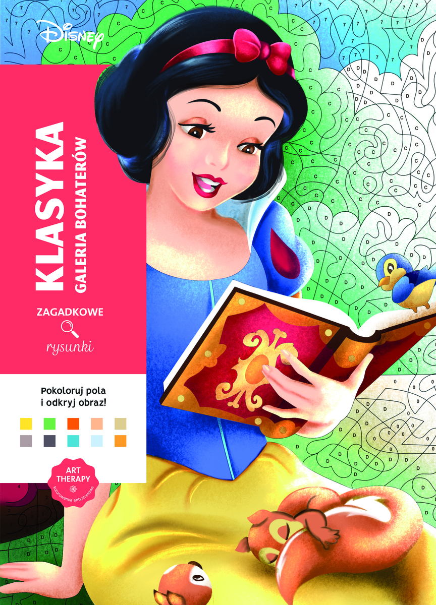 Długie godziny relaksu z najwspanialszymi bohaterami animacji Disneya Oto kolejne 100 niepublikowanych wcześniej plansz do kolorowania. Znajdziesz wśród nich wizerunki postaci, które dobrze znasz z ulubionych animacji. Dobierz barwy zgodnie z kodem umieszczonym na dole każdej strony i wypełniaj nimi pole po polu, a powstaną zachwycające obrazy. Wskazówka: Podczas kolorowania najlepiej używać flamastrów akrylowych lub wodnych. Mazaki alkoholowe przebijają na kolejną stronę, zasłaniając obrazek na odwrocie kartki. W wersji francuskiej książka ukazała się pod tytułem: Coloriages mysteres Disney – Tome 9