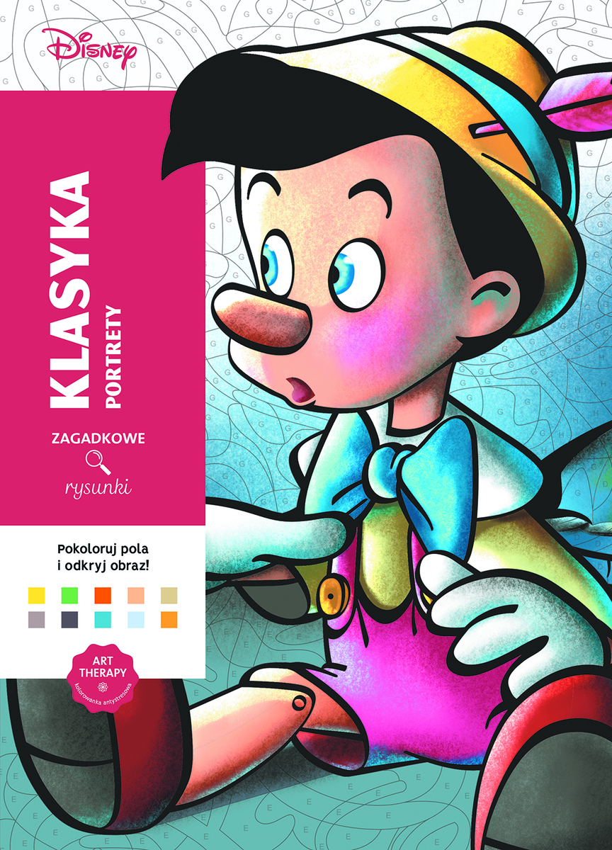 100 OBRAZÓW DO POKOLOROWANIA Kopciuszek, Esmeralda oraz wiele innych postaci z kultowych animacji Disneya zagościło na stronach kolejnego tomu z cyklu „Klasyka”. Zacznij od doboru kolorów zgodnie z paletą barw zamieszczoną pod każdą ilustracją. Następnie wypełniaj pola, obserwując, jak dzięki twojej cierpliwości i twórczemu zaangażowaniu powstają niepowtarzalne kompozycje. Koloruj według kodu i odkrywaj tajemnice obrazów!