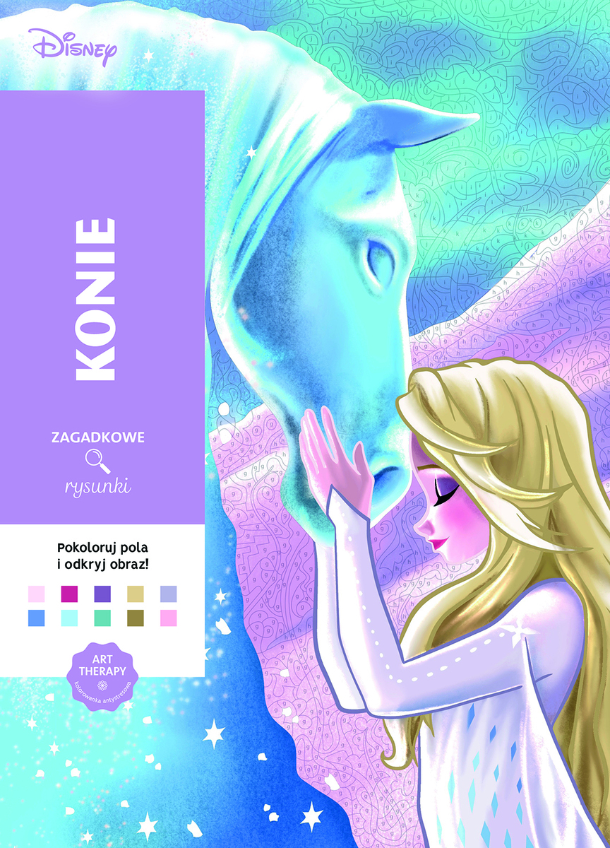 Kolorowanki dla dorosłych, których bohaterami są konie, jednorożce i... Pegaz. Niezależnie od tego, czy są magiczne, mają skrzydła, czy są po prostu upartymi końmi z farmy – zawsze potrafią nas rozbawić lub przenieść w świat marzeń. To najlepsi przyjaciele bohaterów oraz bohaterek animacji Disneya i Pixara. Ruszaj razem z nimi galopem ku nowym przygodom! Wybierz stronę i koloruj, podążając za kodem numerycznym. Daj się ponieść wyobraźni! Na niektórych obrazach zastosowano różne odcienie tego samego koloru, co pozwala na uzyskanie głębi i detali. Dlatego warto zaopatrzyć się w kredki o szerokiej palecie barw, aby w pełni wykorzystać potencjał ilustracji i nadać im niepowtarzalny charakter. Kolorowanki antystresowe to idealny sposób na relaks i ukojenie. Dają chwilę wytchnienia, pomagają oderwać się od codziennych zmartwień i wprowadzić do życia spokój. Doskonałe dla każdego, kto pragnie kreatywnej ucieczki od stresu! Książka zawiera kilkadziesiąt ilustracji – w tym kilka dwustronicowych – oraz miejsca na próbniki kolorów.