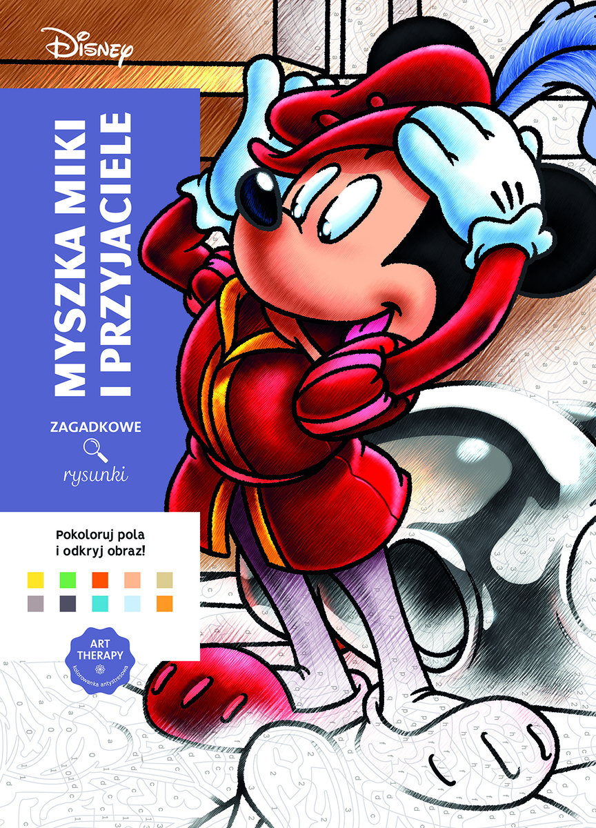 Pokoloruj obrazki po numerach, a odkryjesz na nich Myszkę Miki i jego przyjaciół. Na kartach tej książki znajdują się m.in. Goofy, Kaczor Donald, Minnie, Pluto, Figaro czy Sknerus McKwacz. Nadaj im barw, przypominając sobie kadry z filmów i seriali sprzed lat. Sięgnij po kredki, podążaj za kolorowymi kodami i obserwuj, jak z każdej strony wyłaniają się twoi ulubieni bohaterowie.