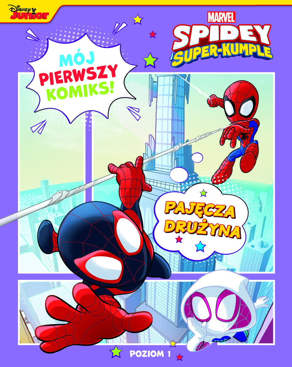 NIECH LECI SIEĆ! Przed Pajęczą Drużyną nowe wyzwania – Spidey, Ghost-Spider i Spin dotrą tam, gdzie potrzebna jest pomoc, i zmierzą się z podstępnymi łotrami. Sprawdź, czy każda akcja zakończy się sukcesem! Książki z serii „Mój pierwszy komiks” są przeznaczone dla dzieci, które umieją już czytać. Tekst jest dostosowany do ich wieku, a rysunki mają przejrzysty układ.