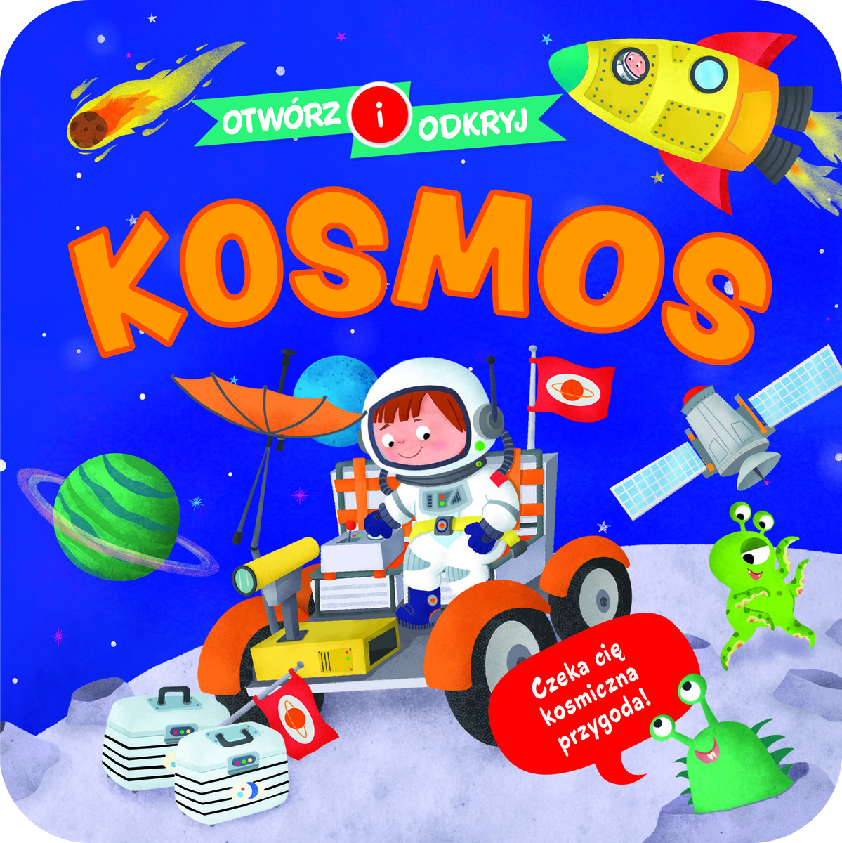 Ruszaj na podbój kosmosu! Przed tobą niezwykła podróż wśród gwiazd, planet i tajemniczych zakątków wszechświata. Kosmos jest ogromny i pełen fascynujących zjawisk, które od dawna ciekawią naukowców i odkrywców. W Układzie Słonecznym krążą planety, księżyce, asteroidy i komety, a każda z nich ma swoje wyjątkowe cechy. Otwieraj kolejne okienka i poznawaj niesamowite ciekawostki o kosmosie – może kiedyś sam wyruszysz w taką kosmiczną wyprawę! Powyższy opis pochodzi od wydawcy.