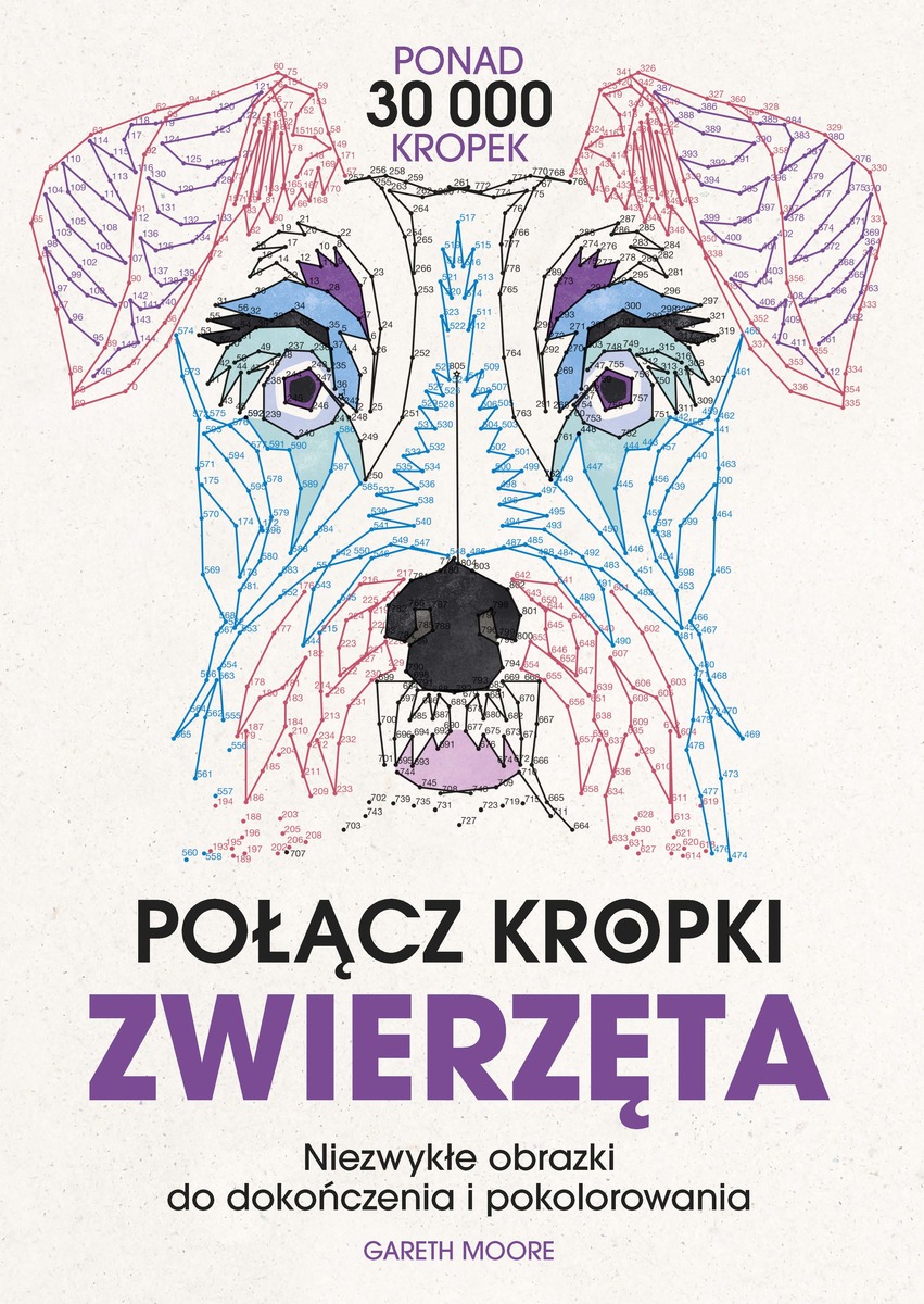 Książka zawiera 30 niezwykłych ilustracji, które powstają z łączenia kropek – a jest ich naprawdę imponująca liczba! W całej książce znajdziecie ponad 30 tysięcy kropek, które krok po kroku zamieniają się w szczegółowe, zaskakujące obrazki. Na ilustracjach pojawiają się zwierzęta z różnych zakątków świata, gotowe, by ożyć dzięki waszej cierpliwości i wyobraźni. Każdy obraz można pokolorować zgodnie z podanymi wskazówkami lub puścić wodze fantazji i stworzyć własną, niepowtarzalną wersję. To doskonałe połączenie zabawy, koncentracji i kreatywności, które wciąga na długie godziny. Powyższy opis pochodzi od wydawcy.