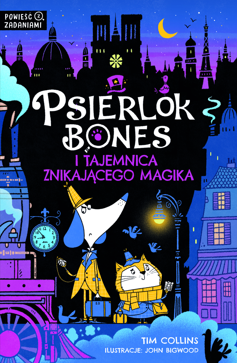 To już trzecia część pasjonującej serii detektywistycznej, którą pokochały dzieci na całym świecie. Po rozwiązaniu zagadki kradzieży klejnotów z Pałacu Psiemiejskiego oraz tajemnicy zaginięcia bezcennej maski z grobowca faraona w Egipcie Psierlok Bones i doktor Jane Kotson jadą pociągiem do Paryża. Niespodziewanie w środku nocy z wagonu znika pasażer, słynny magik Wielki Otto. Kotson podejrzewa, że doszło do porwania... ale nikt poza nią nie widział magika. Czy najwspanialszemu psiemu detektywowi i jego zaufanej wspólniczce uda się rozwiązać zagadkę, zanim będzie za późno? Oprócz ekscytującej przygody w książce znajdziesz także 28 zabaw, w tym labirynty, wyszukiwanki i zadania matematyczne. Rozwiąż wszystkie, aby pomóc parze nieustraszonych poskromicieli zbrodni poradzić sobie z najbardziej zagadkową sprawą w ich dotychczasowej karierze. Powyższy opis pochodzi od wydawcy.