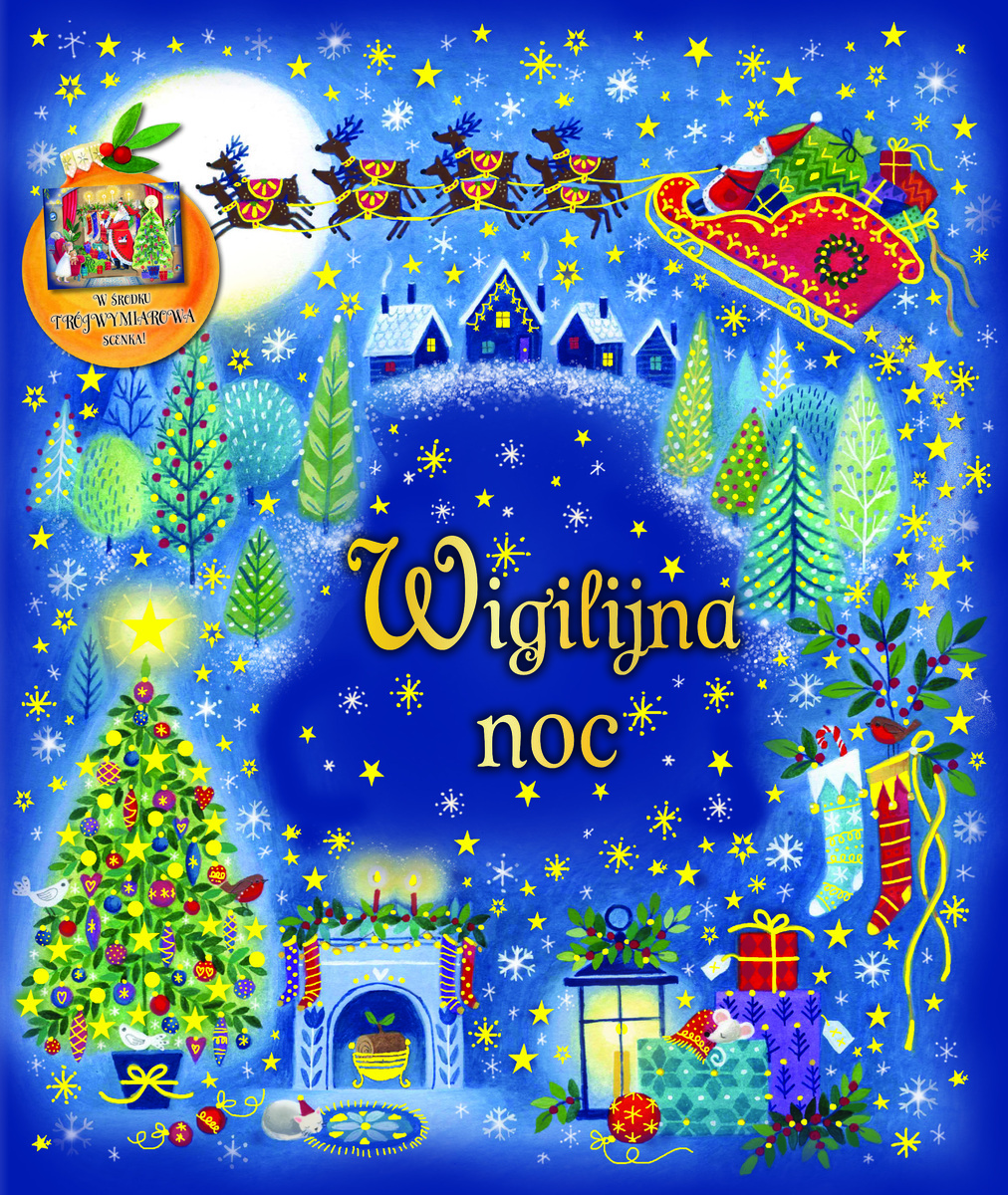 To prawdziwa perełka wśród książeczek bożonarodzeniowych. Zachwyca nie tylko treścią, ale przede wszystkim swoją niezwykle dopracowaną i efektowną oprawą graficzną. Już sama okładka przyciąga wzrok – pokryta złotymi, połyskującymi gwiazdkami i eleganckim liternictwem, sprawia wrażenie wyjątkowego, świątecznego prezentu. Jest niczym bombonierka pełna niespodzianek – piękna, klimatyczna i dopracowana w każdym szczególe. Po otwarciu książki świąteczna magia ożywa – trójwymiarowa scenka z Mikołajem i dziećmi wita czytelnika już na pierwszej rozkładówce. Dalej czeka ciepła, pięknie zilustrowana opowieść o wyjątkowej wigilijnej nocy, pełna uroku i świątecznej atmosfery. To idealna książka do wspólnego czytania w grudniowe wieczory.