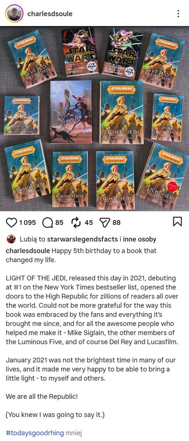 Minęło pięć lat od zainicjowania projektu The High Republic. W związku z tym Charles Soule, autor pierwszej powieści cyklu, Światło Jedi, opublikował jubileuszowy post na Instagramie, a na zdjęciu, w dolnym lewym rogu... Sami zobaczcie:)