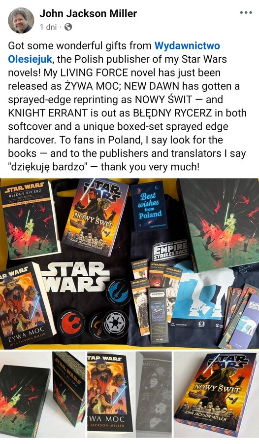 Błędny rycerz to oczywiście niejedyna powieść tego pisarza, która trafiła w ostatnim czasie do naszej oferty; nie zapominajmy o kanonicznej nowości Star Wars. Żywa Moc.