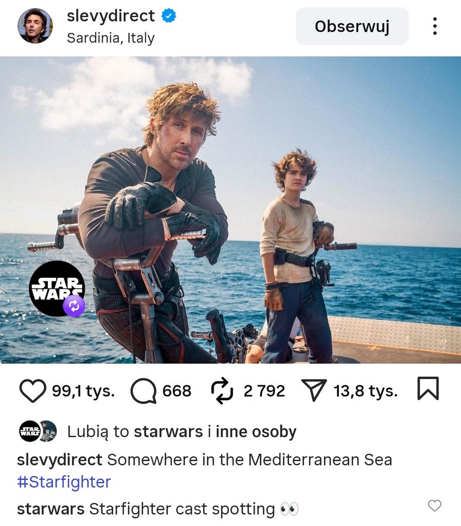 Shawn Levy, reżyser filmu Star Wars.Starfighter zapowiedzianego na 2027 rok, na swoim profilu na Instagramie podzielił się zdjęciem z planu, na którym widoczni są Ryan Gosling i Flynn Gray.