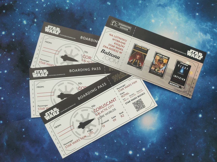 Do zdobycia będzie kolejny pamiątkowy bilet do odległej galaktyki – tym razem na stołeczną planetę Coruscant! Oprócz tego na naszej stronie internetowejwww.wydawnictwoolesiejuk.pl ponownie udostępnimy fragmenty wybranych powieści z odległej galaktyki!